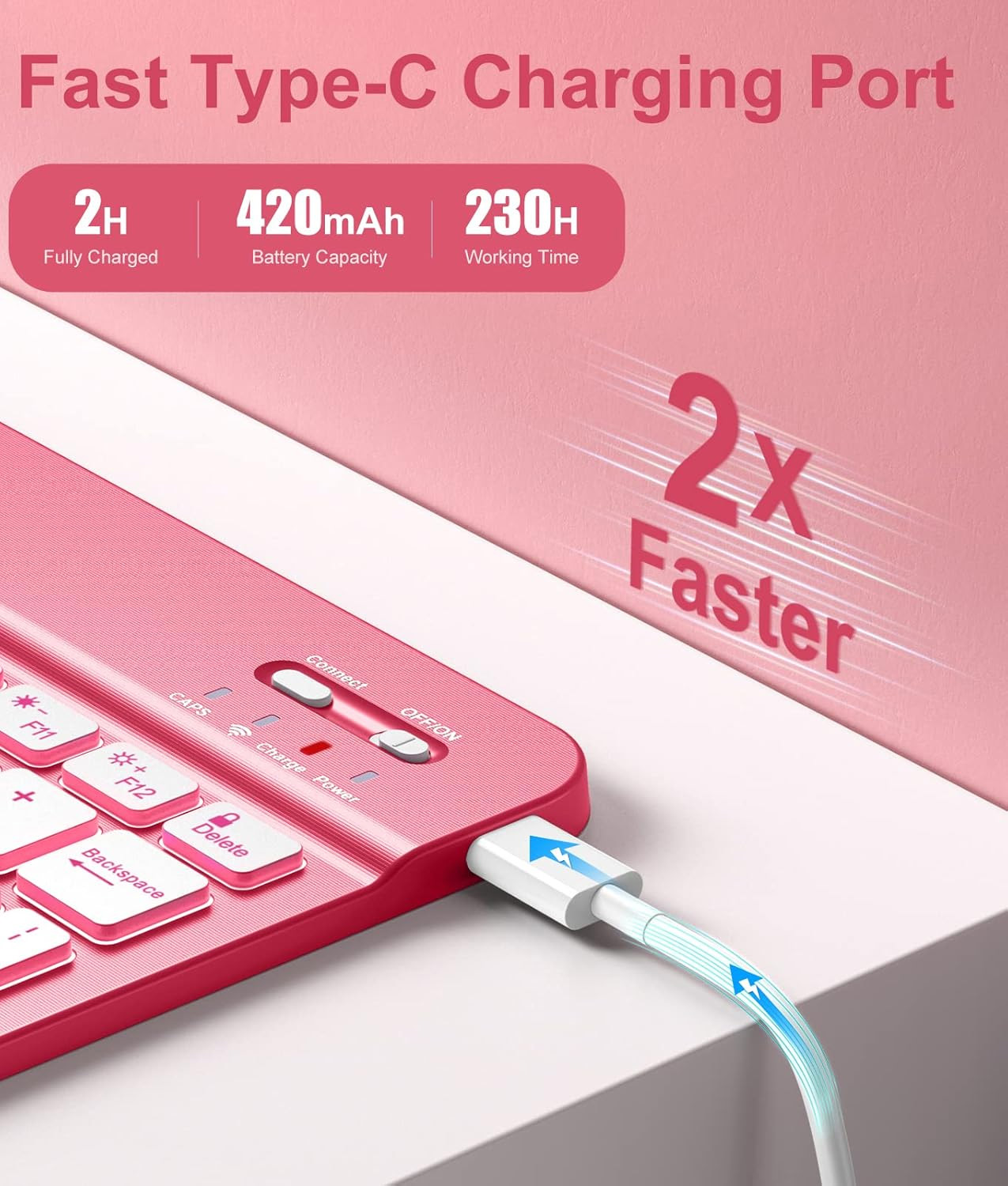 Rechargeable and Long Battery Life: This iPad case with keyboard built-in large capacity battery, more energy saving and lower consumption, ensure you can use at least 230 hours. It can be fully charged in 2 hours with Type-C charging cable, don't need to replace battery